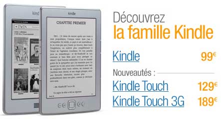 Les liseuses électroniques Kindle Touch et Kindle Touch 3G d'Amazon sont donc disponibles sur le site au tarif respectif de 129€ et 189€