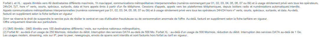 En effet Free mobile, Prixtel, B&YOU et d'autres sont bien plus agressifs et avec moins de limitations : ici, pour les appels illimités il ne faudra pas dépasser 1 heure/appel et 49 correspondants différents par mois et 100 correspondants différents pour les SMS, pour l'internet aussi les limitations sont présentes : voir ci-dessous (cliquez pour agrandir)