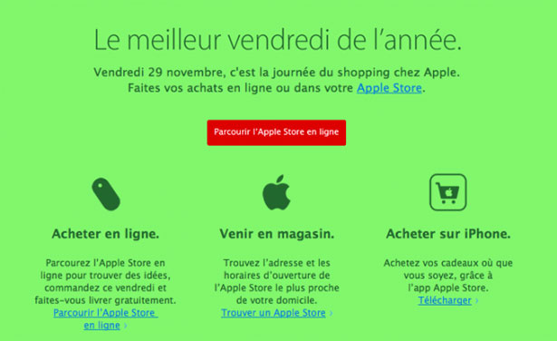 Apple annonce donc une journée de soldes : "Black Friday" aux Etats Unis et cette journée aura lieu le vendredi 29 novembre.